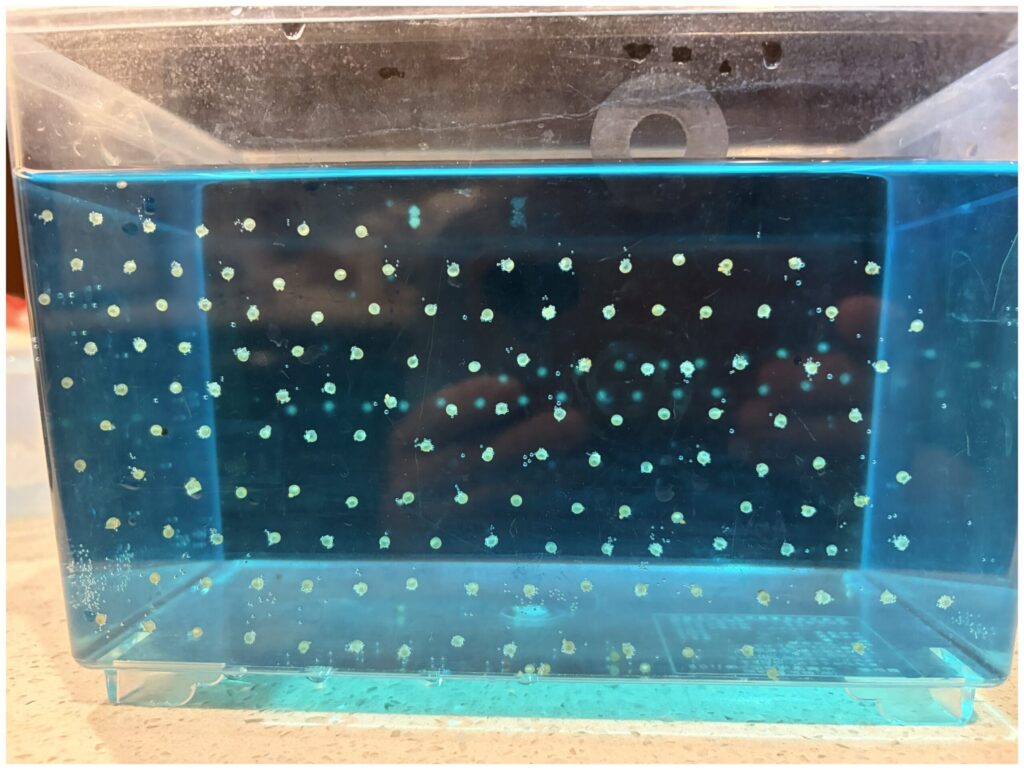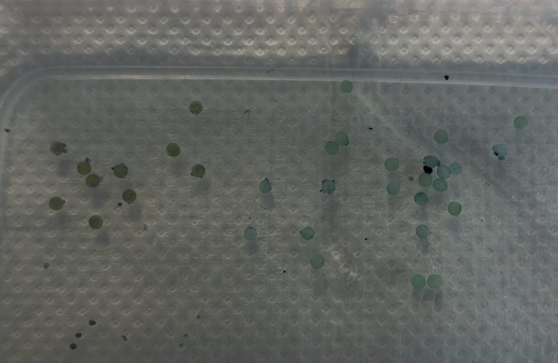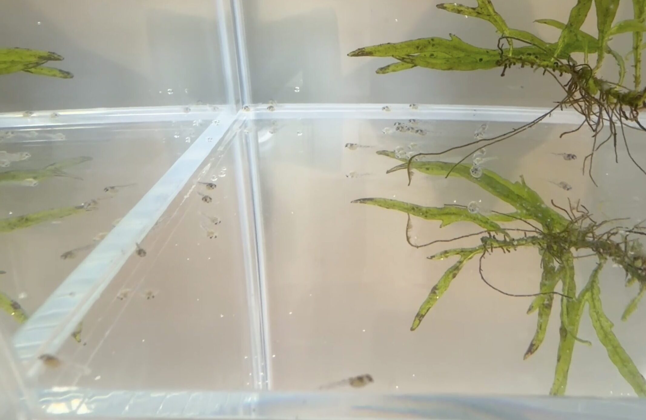 おおよそ数日で孵化が始まり、孵化後は別容器へ移動させ、稚魚の管理に切り替えます。