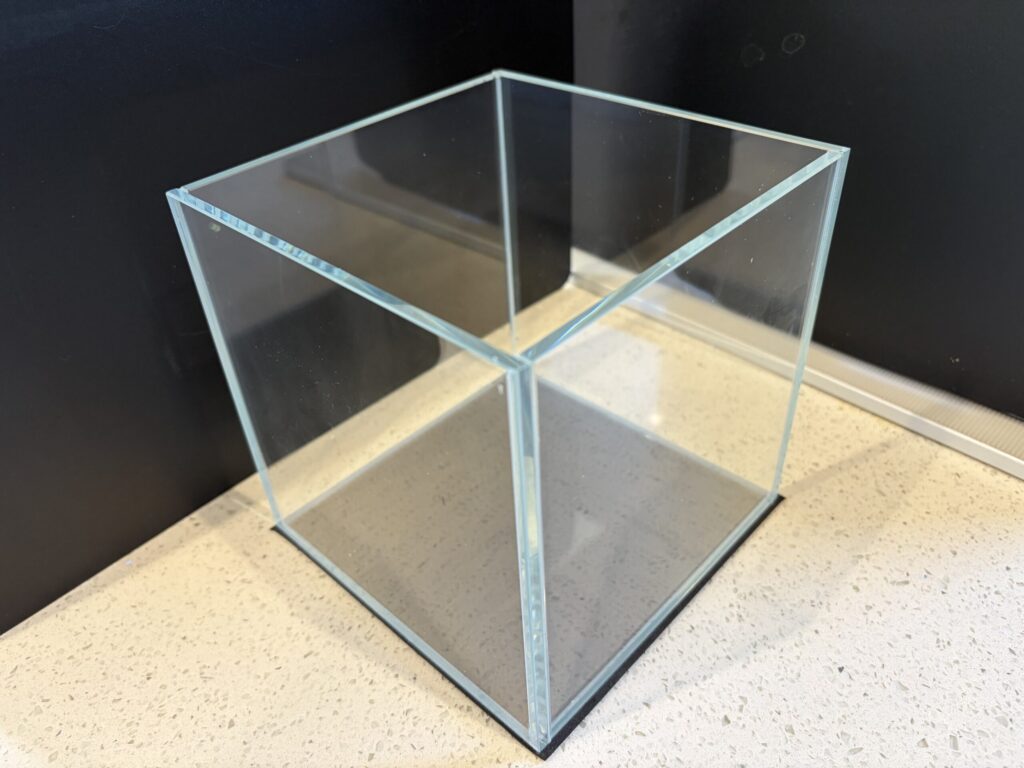 ちなみに使用している商品は、「アクロ15キューブ スーパークリア」です。通常の15キューブ水槽より透明度が高いので稚魚の様子が観察しやすく、チャームで2,000円弱で購入できるのでおすすめです。